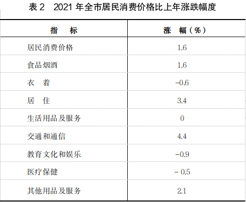 全年全市居民消费价格比上年上涨1.6%,商品零售价格上涨4.9%,工业生产者出厂价格上涨30.2%,工业生产者购进价格上涨16.3%。