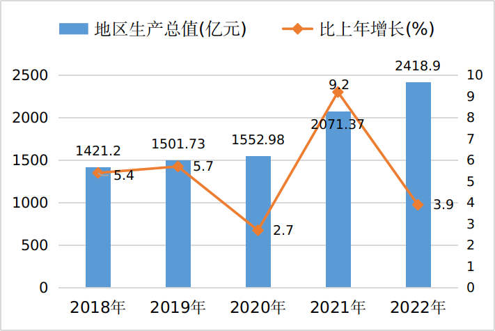 图1 2018-2022年全市地区生产总值及其增长速度