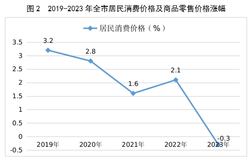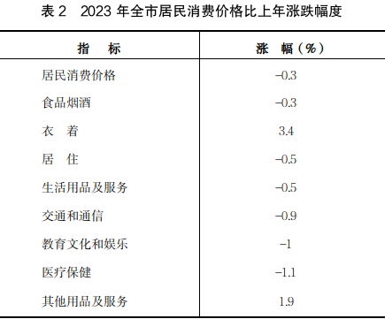 全年全市居民消费价格比上年下降0.3%,工业生产者出厂价格下降8.7%,工业生产者购进价格下降5.3%。