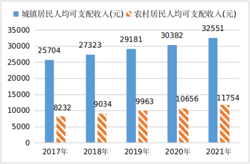 全年全市城镇居民人均可支配收入32551元,比上年增长7.1%,城镇居民人均消费支出18845元,增长10.51%;农村居民人均可支配收入11754元,增长10.3%,农村居民人均消费支出8963元,增长11.95%。