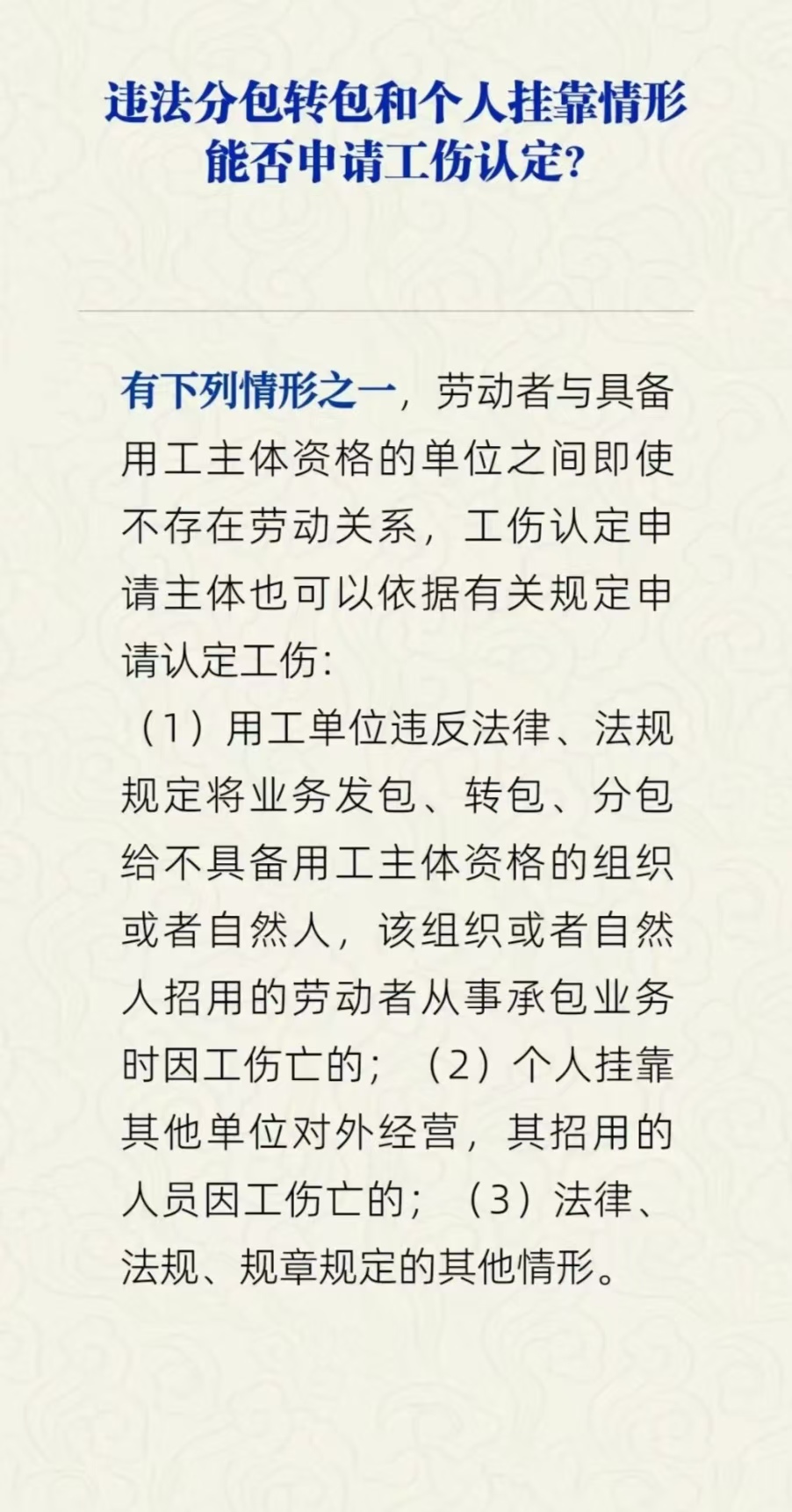 违法分包转包和个人挂靠情形能否申请工伤认定?